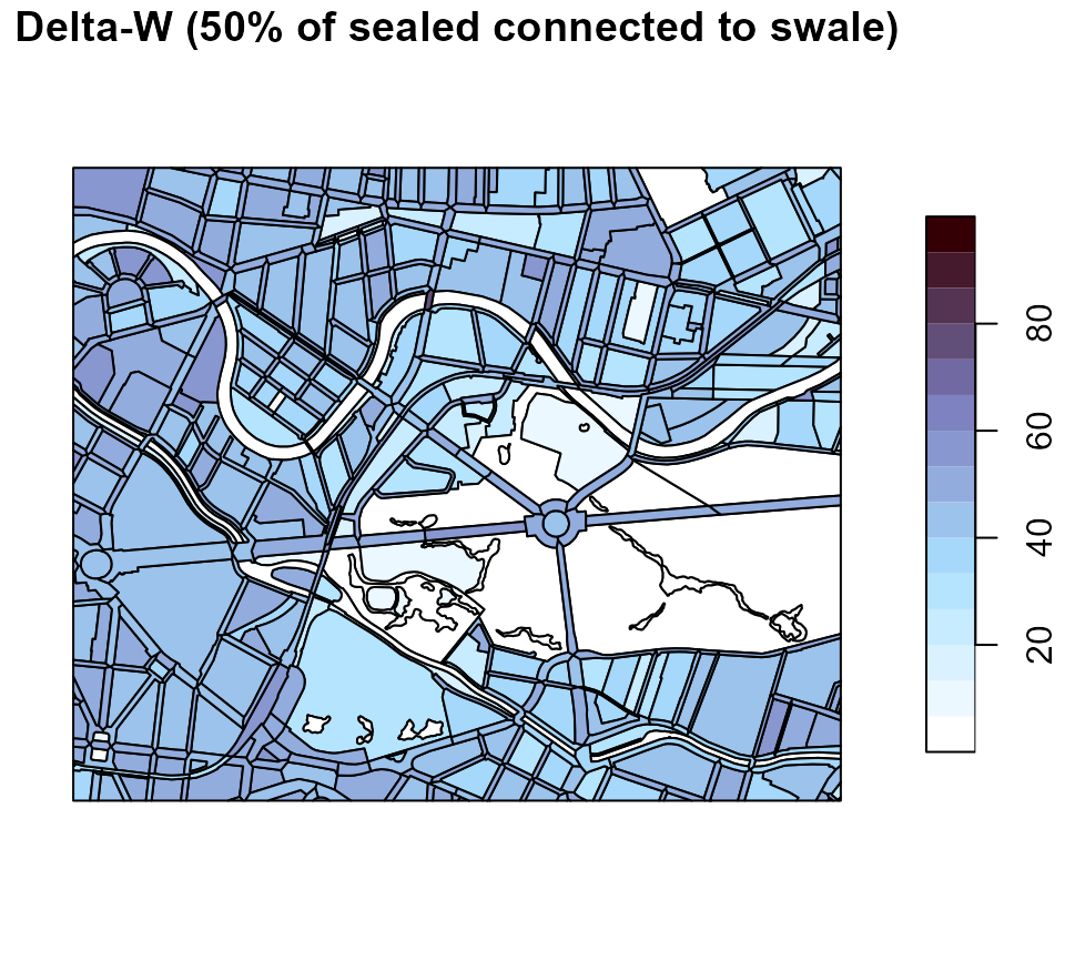 plot_delta_w(delta_w_swale, main = "Delta-W (50% of sealed connected to swale)")